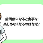 【東松山の歯医者で歯周病治療】歯周病になると食事を楽しめなくなるのはなぜ? 2026年2月14日 歯周病 歯周病と言えば、歯茎が腫れ上がったり、ブラッシングなどの少しの刺激で出血したりするようになることで有名です。また歯周病が進行している方は、以前と比べて食事も楽しめなくなります。今回は、なぜ歯周病によって食事の楽しさが半減するのかについて解説します。 歯周病によって食事を楽しめなくなるのはなぜ? 歯周病によって食事を楽しめなくなるのは、物理的に噛めないことや慢性的な痛み... 続きを読む